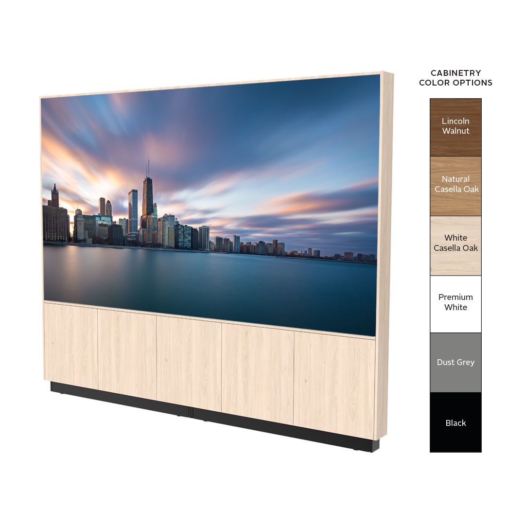 dvLED display, mounting system, and furniture-grade HPL cabinetry – integrated into one complete solution.
