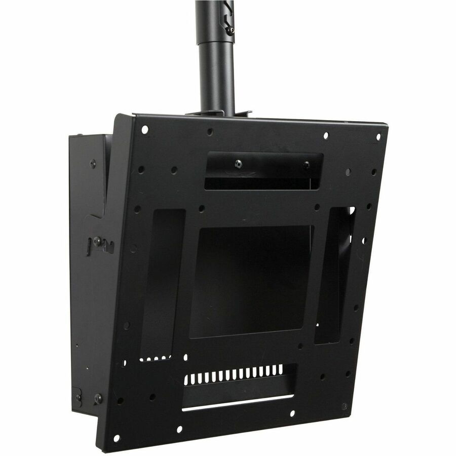 The DST995 Flat/Tilt Universal Ceiling Mount with Media Player Device Storage offers a "single-box" solution for most medium to large format digital signage display installations. This universal solution was designed to provide easy access to internal media player storage space without having to remove the display. The ratchet tilt design and swivel adjustments allow the display to be set at the perfect viewing angle for maximum impact.